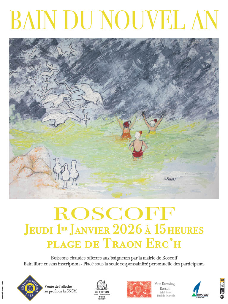 Retour liste Home >Animations >Bain du Nouvel An Bain du Nouvel An Roscoff Öffnungszeiten – Am Thursday 1 January 2026 à 15:00 Lage Plage de Traon Erch Roscoff Tel. 06 76 46 89 38 baindunouvelanroscoff@gmail.com Zu meinen FavoritenEntfernen aus den Favoriten Route & Zugang In der Nähe