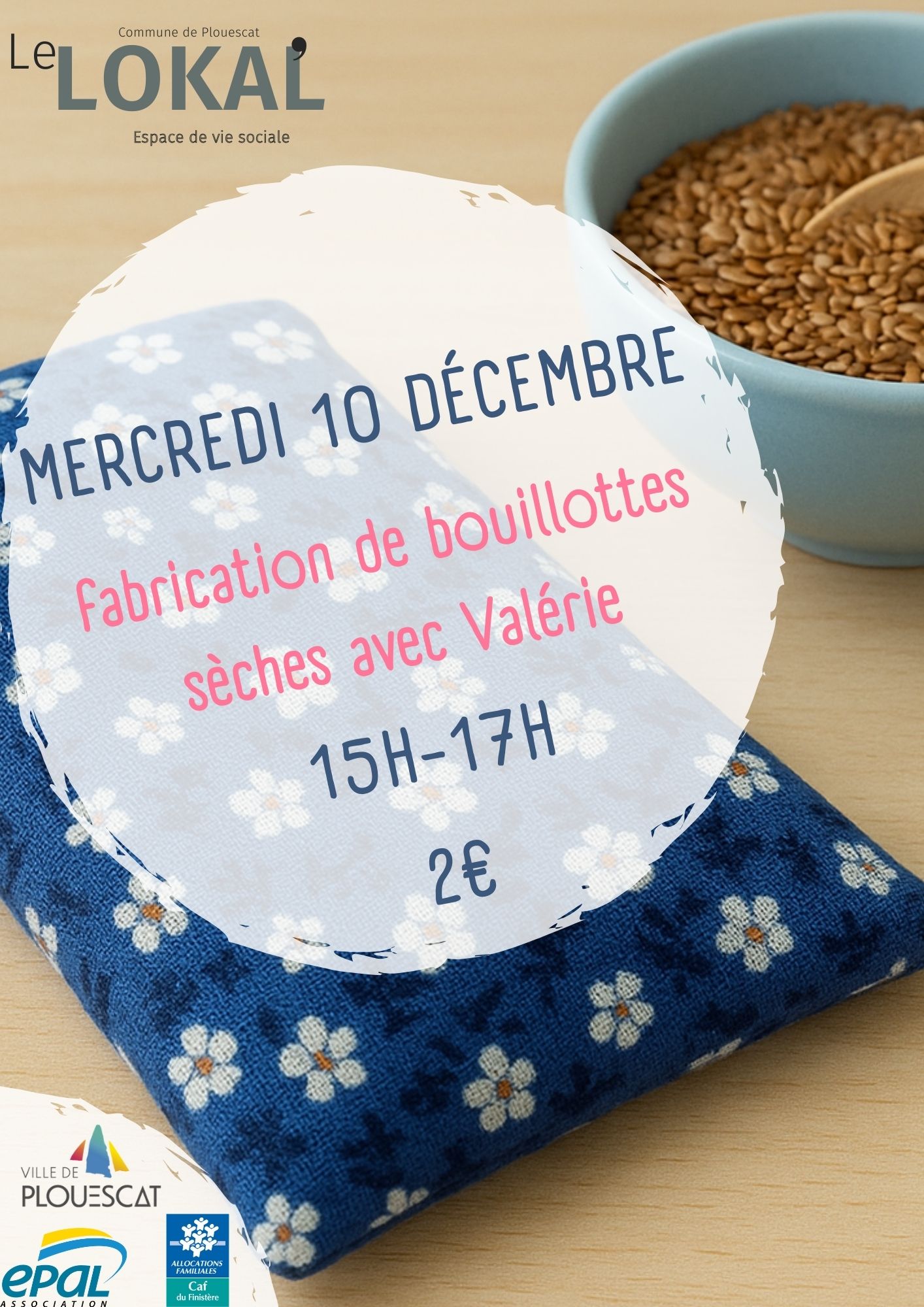 Retour liste Home >Animations >Fabrication de bouillotte sèche Fabrication de bouillotte sèche Plouescat 2€ Öffnungszeiten – Am Wednesday 10 December 2025 de 15:00 à 17:00 Preise Grundpreis : ab 2,00€ Lage Le Lokal 5 parc des Sports Plouescat Tel. 06 45 51 80 59 plouescat.evs@epal.asso.fr Webseite Zu meinen FavoritenEntfernen aus den Favoriten Route & Zugang In der Nähe