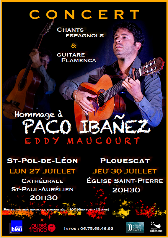 Retour liste Home >Animations >Konzert “Hommage an Paco Ibañez: Spanische Lieder und Flamenco-Git Konzert “Hommage an Paco Ibañez: Spanische Lieder und Flamenco-Git Plouescat 10€ Öffnungszeiten – Am Thursday 30 July 2026 à 20:30 Preise Grundpreis : ab 10,00€ (participation minimale souhaitée – gratuit pour les moins de 12 ans) Lage Eglise de Plouescat Plouescat Tel. 06 75 68 46 92 Zu meinen FavoritenEntfernen aus den Favoriten Route & Zugang In der Nähe