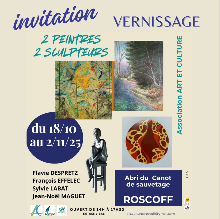 Retour liste Home >Animations >Salon des Arts – Exposition Salon des Arts – Exposition Roscoff Öffnungszeiten – Von Saturday 18 October 2025 bis Sunday 2 November 2025 de 14:00 à 17:30 Lage Abri du Canot de Sauvetage Quai d’Auxerre Roscoff art.culturearoscoff@gmail.com Zu meinen FavoritenEntfernen aus den Favoriten Route & Zugang In der Nähe