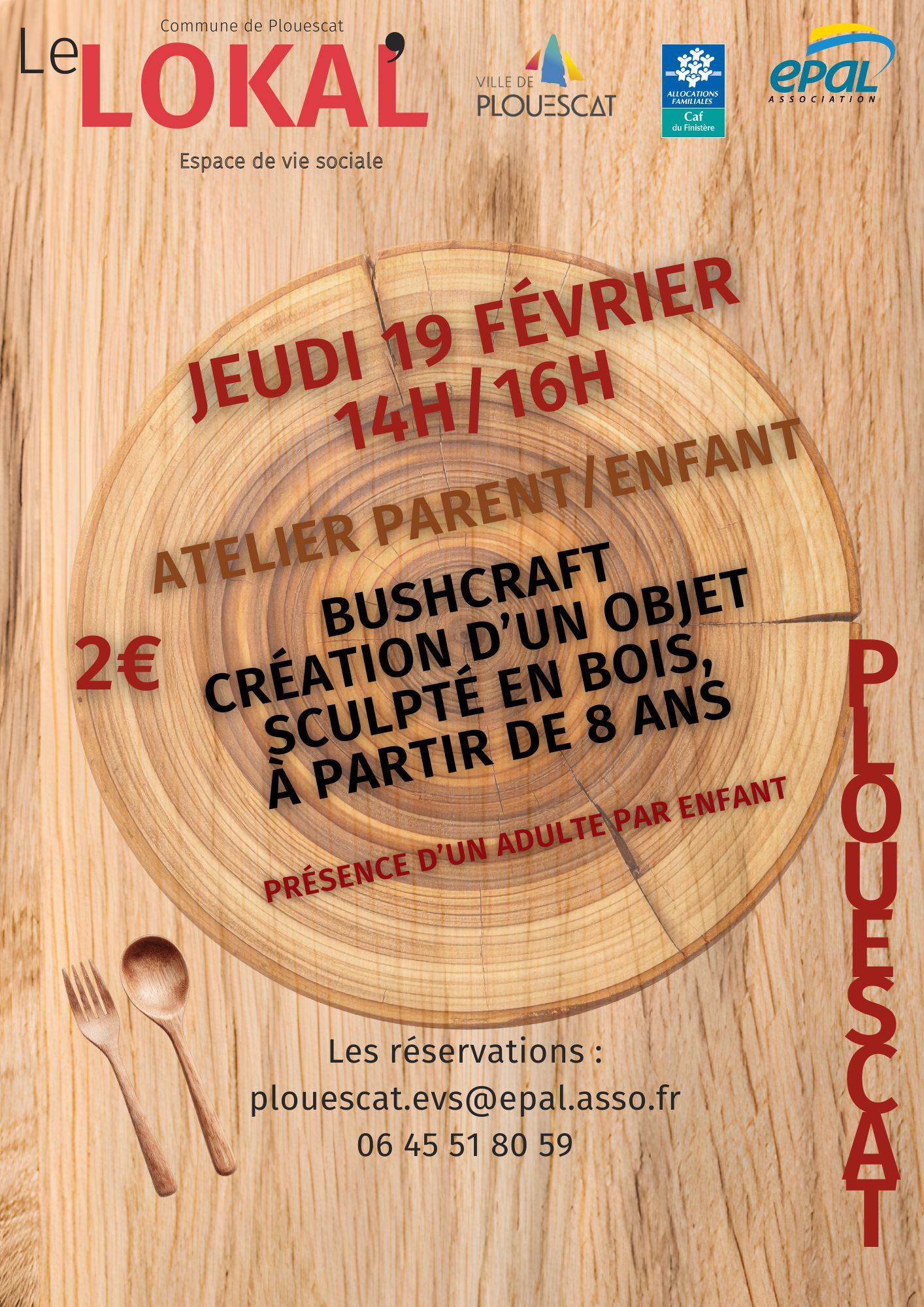 Retour liste Home >Animations >Bushcraft workshop for parents and children Bushcraft workshop for parents and children Plouescat 2€ Opening – The Thursday 19 February 2026 de 14:00 à 17:00 Prices Base rate : from 2,00€ Location Le Lokal 5 parc des Sports Plouescat Tel. 06 45 51 80 59 plouescat.evs@epal.asso.fr Website Add to favoritesRemove from favorites Route & access Nearby