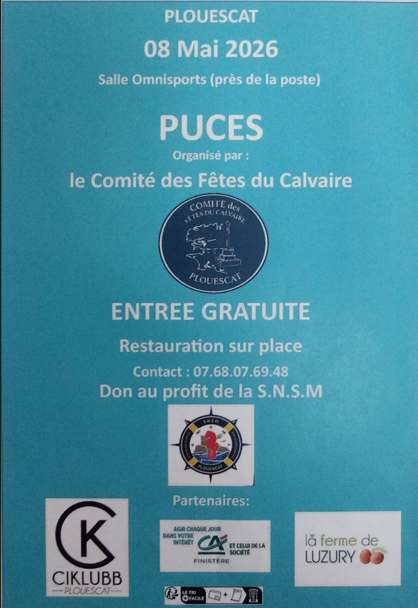 Retour liste Home >Animations >Flea market in aid of the SNSM Flea market in aid of the SNSM Plouescat Opening – The Friday 8 May 2026 de 09:00 à 17:00 Location Salle omnisport du centre Rue de Verdun Plouescat Tel. 06 64 42 86 15 Add to favoritesRemove from favorites Route & access Nearby