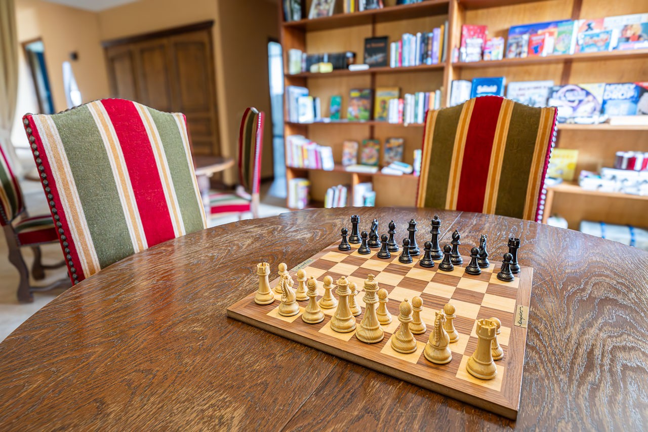 A l’étage, sur la mezzanine , vous trouverez de nombreux jeux et livres pour des soirées conviviales.