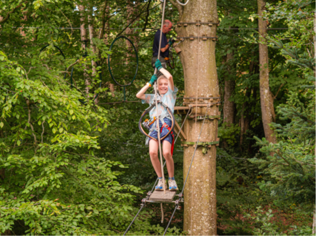 Dès 5 ans, les enfants évoluent dans les arbres équipés d’un harnais de sécurité et d’un système de mousquetons intelligents. Le parc propose 11 parcours aventure en hauteur, accessibles en illimité, pour tous les niveaux.