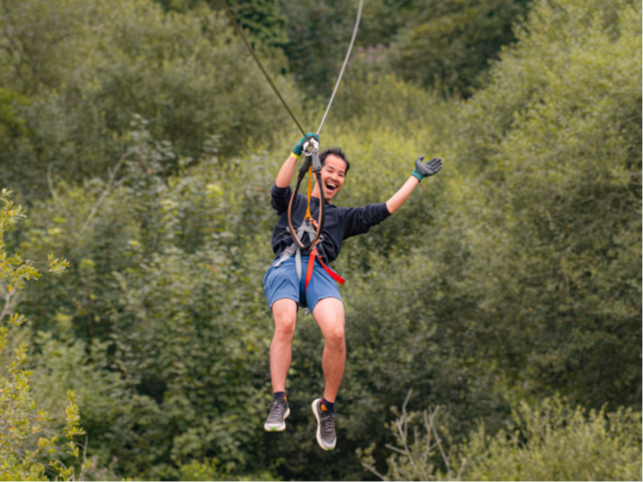 Pour couronner le tout, profitez de plus de 1 200 mètres de tyroliennes pour survoler la forêt.