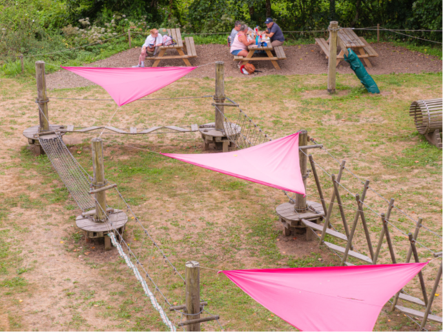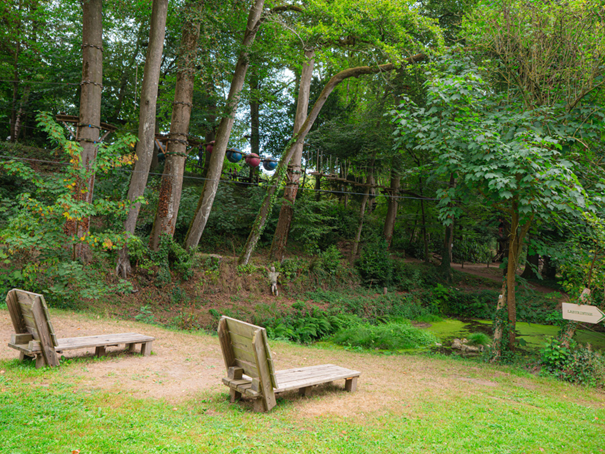 Vous pourrez profiter d’un vrai lieu de détente : tables de pique-nique, mini-jeux en bois, labyrinthe végétal et coin gourmand pour reprendre des forces entre deux parcours.