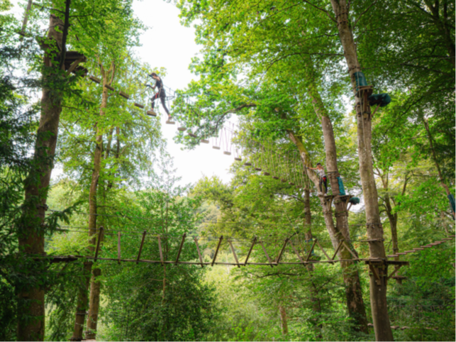 Lianes, ponts suspendus, passerelles aériennes, surf dans les airs et TYROLIENNES GÉANTES de 250 m et 300 m !