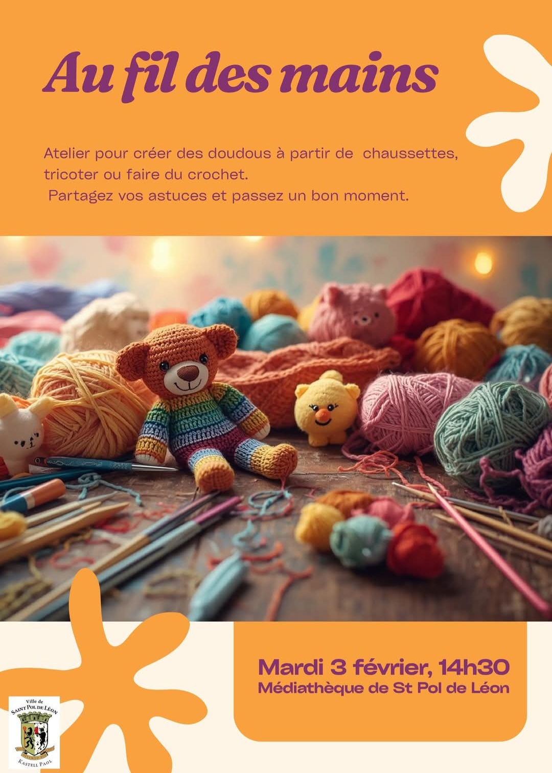 Envie de créer de vos mains ? Rejoignez notre nouvel atelier pour donner vie à des doudous en chaussettes, pour échanger vos patrons de couture, de tricot, de crochet, etc…. Si vous êtes débutant, venez apprendre avec des personnes expérimentées qui veulent transmettre leur savoir-faire.