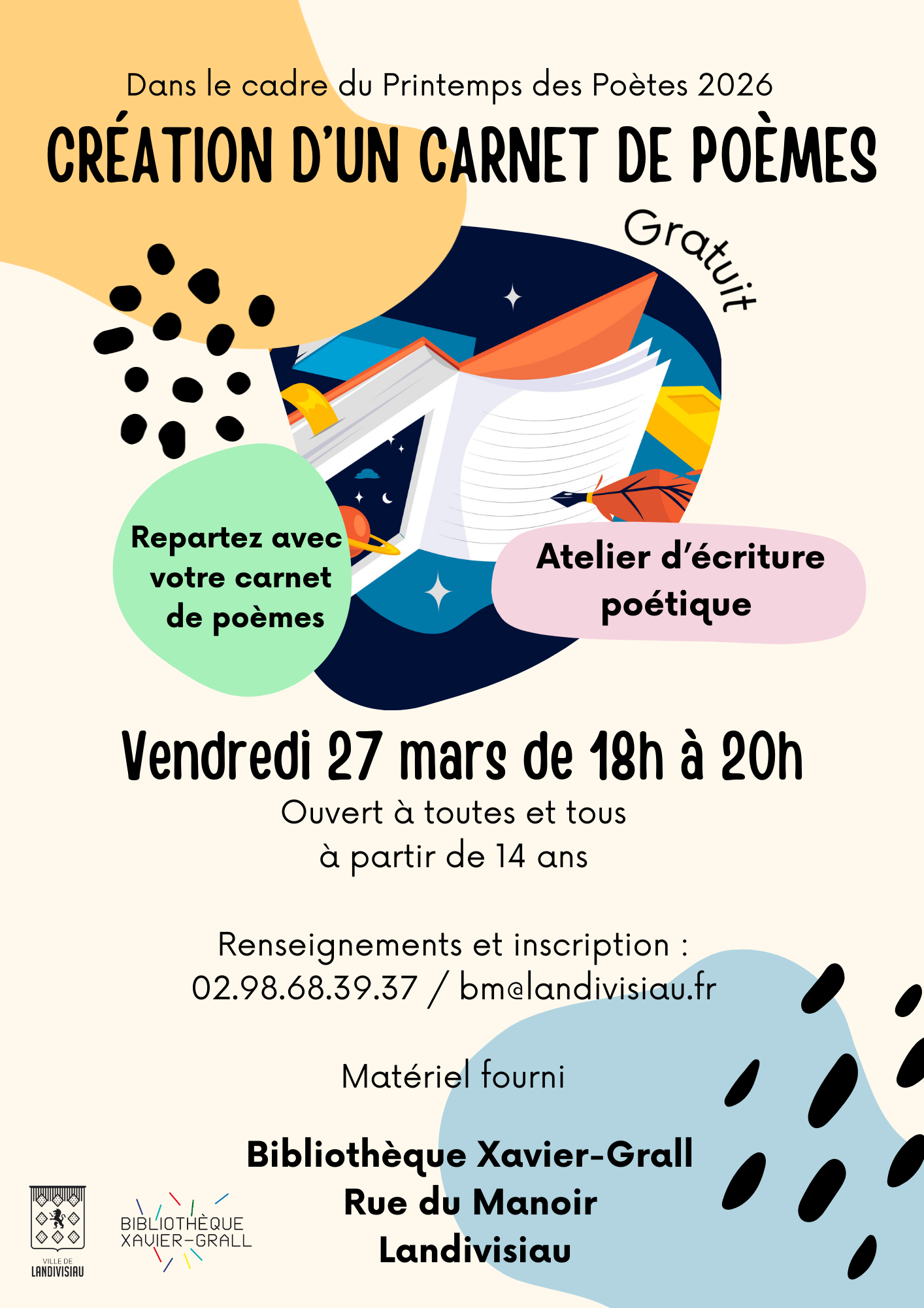 Pour fêter le Printemps des Poètes, venez créer votre propre carnet de poèmes. A partir de jeux d’écriture, laissez votre imagination poétique s’exprimer. Pour vibrer en mots, Ouvrez grand vos yeux Et vos oreilles. Simplement. Intensément. Exprimez votre imaginaire.