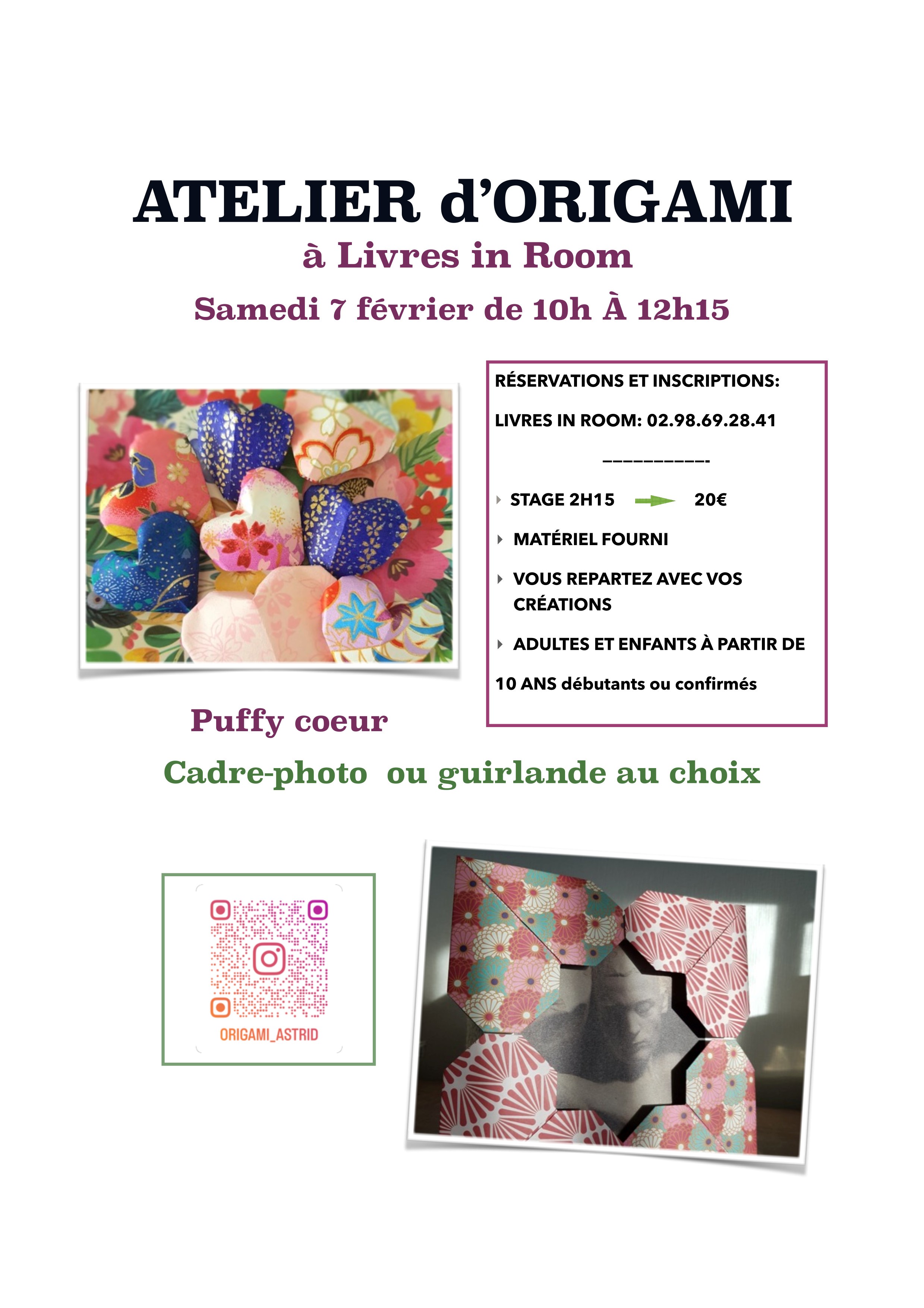 Venez créer votre propre décoration en origami cœurs pour la Saint-Valentin : guirlande ou cadre photo, vous repartirez avec la réalisation de votre choix.