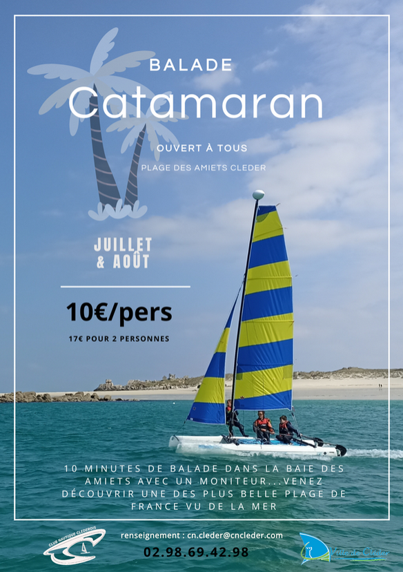Une demi journée par semaine en fonction de la météo le club nautique organise 10 minutes de balade en catamaran dans la baie des Amiets avec un moniteur.