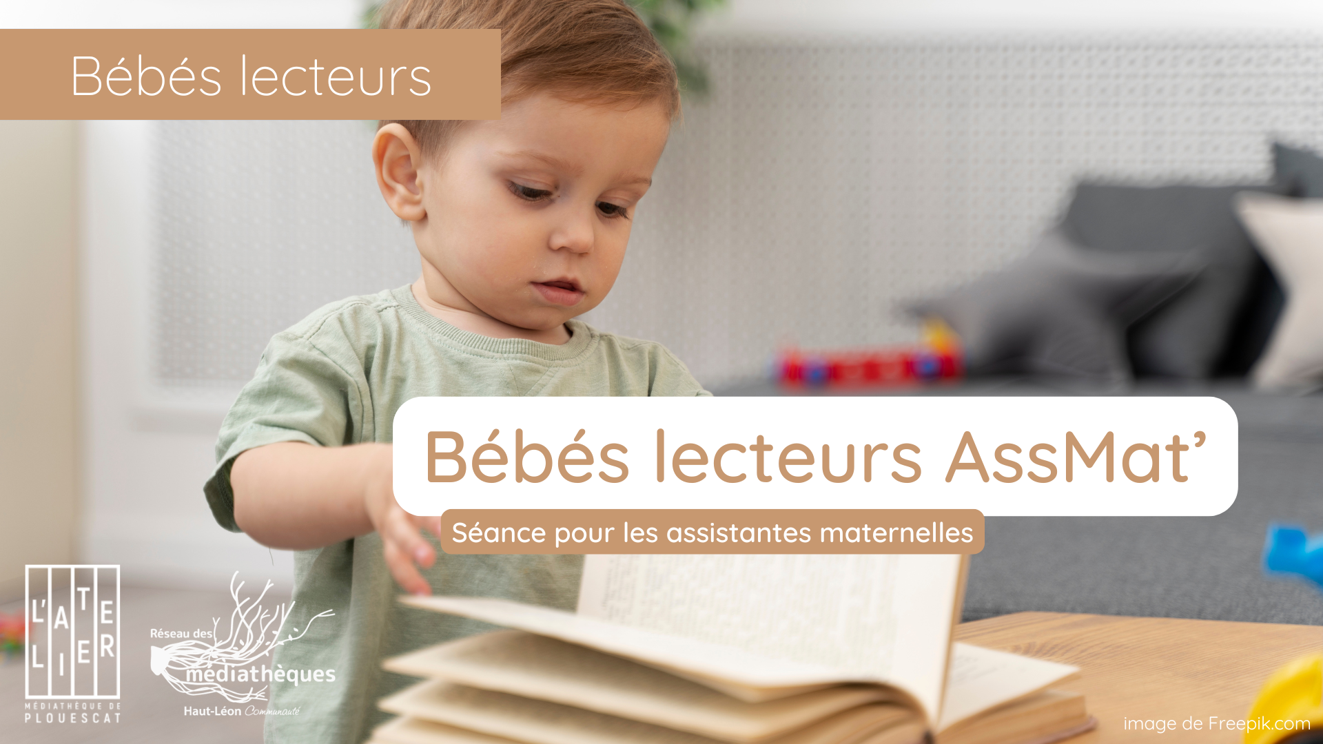 Retour liste Accueil >Animations >Bébés lecteurs AssMat’ Bébés lecteurs AssMat’ Plouescat Séance réservée aux assistantes maternelles. Dates et heures de l’événement – Le vendredi 24 avril 2026 à 10:30 Localisation Médiathèque l’Atelier 14 Place du Dauphin Plouescat Tel. 02 98 69 88 81 latelier.mediatheque@plouescat.fr Site internet Ajouter au carnetRetirer du carnet Itinéraire – Accès À proximité