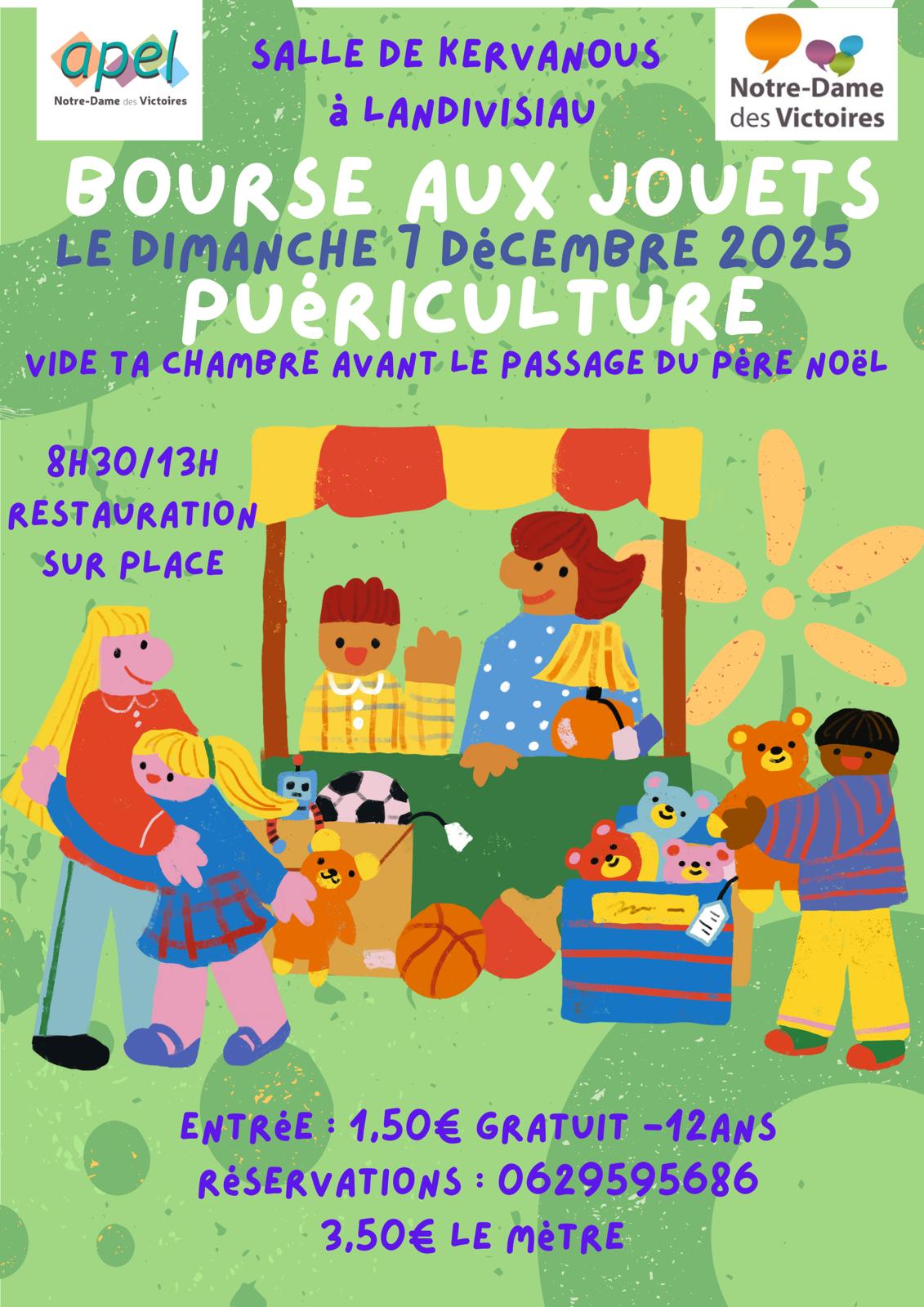 Petite restauration sur place. Surprise pour vos enfants, le Père-Noël nous fera l’honneur de sa présence à partir 11h. Réservez des mètres de ventes par téléphone (06 29 59 56 86) ou par mail (apel2023.ndv.landivisiau@gmail.com) – 3,50€ le mètre.