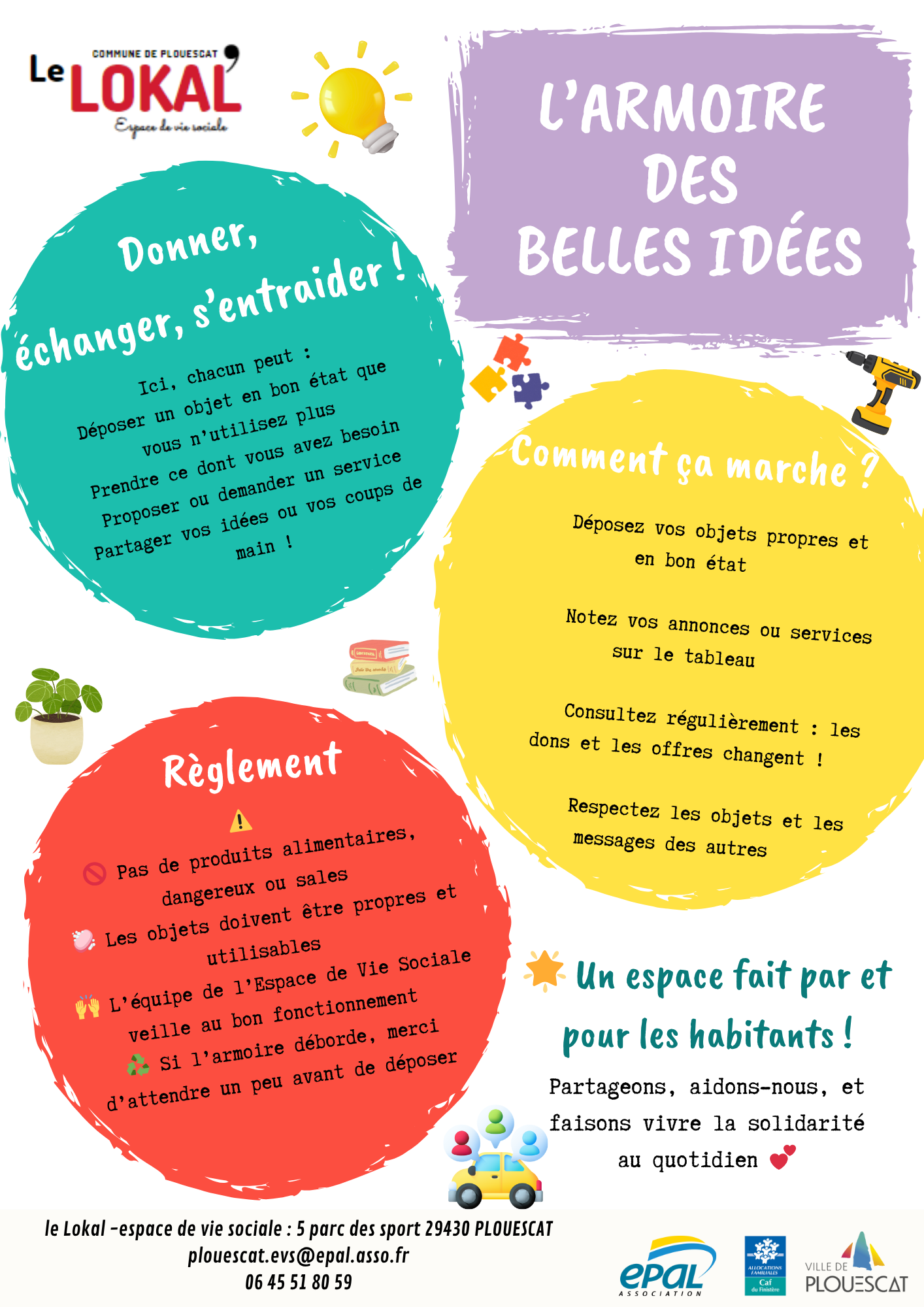 Retour liste Accueil >Animations >Décoration armoire à dons. Décoration armoire à dons. Plouescat Ouvert à tous. Accès libre. Dates et heures de l’événement – Le samedi 15 novembre 2025 de 14:00 à 17:00 Localisation Le Lokal 5 parc des Sports Plouescat Tel. 06 45 51 80 59 plouescat.evs@epal.asso.fr Site internet Ajouter au carnetRetirer du carnet Itinéraire – Accès À proximité