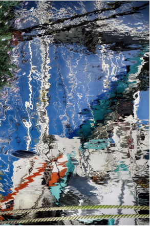 Un carnet de voyages immobiles, où des nuages espiègles et des cordages entrelacés frisent l’abstraction. D’un simple clic, fragments de bateaux, église éclatée en mille éclats de lumière, arbre dansant sont capturés.
