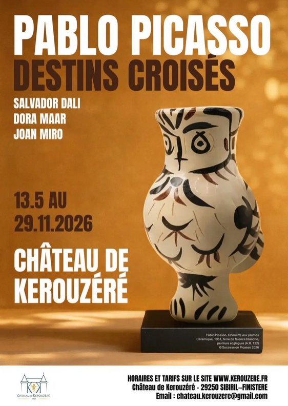 Après l’immense succès de sa 1ère exposition sur Léonard de Vinci en 2025, le Château de Kerouzéré accueille cette année l’un des plus grands créateurs du XXème siècle : Pablo Picasso. Cette exposition porte sur une facette méconnue de l’artiste : l’esprit créatif entourant les arts graphiques, les céramiques, la photographie et l’illustration de textes.