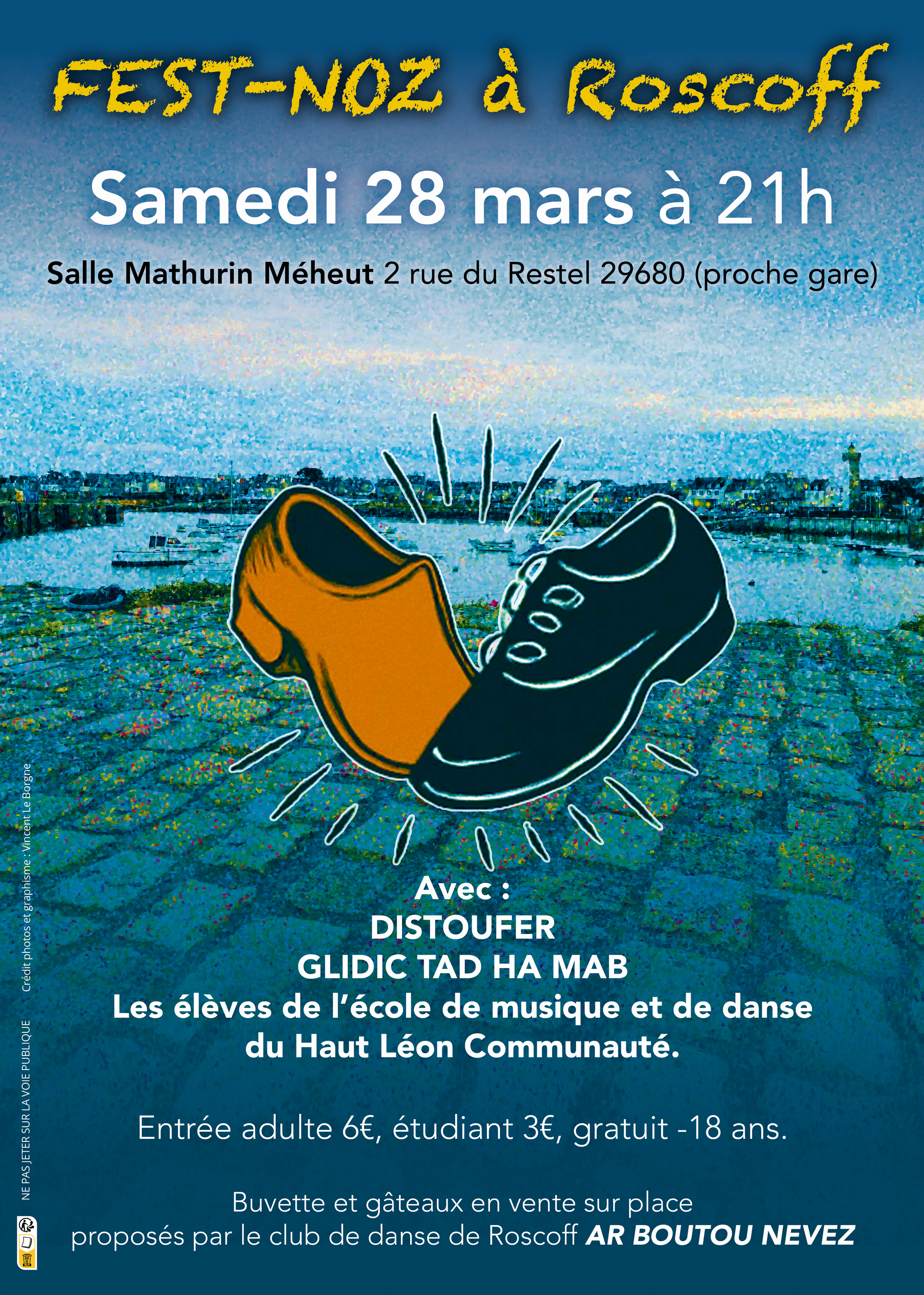 Fest noz à l’espace Mathurin Méheut, organisé par l’association Ar Boùtoù Nevez. Avec : – Distoufer – Glidic Tad Ha Mab Et les élèves de l’école de musique du Haut Léon.