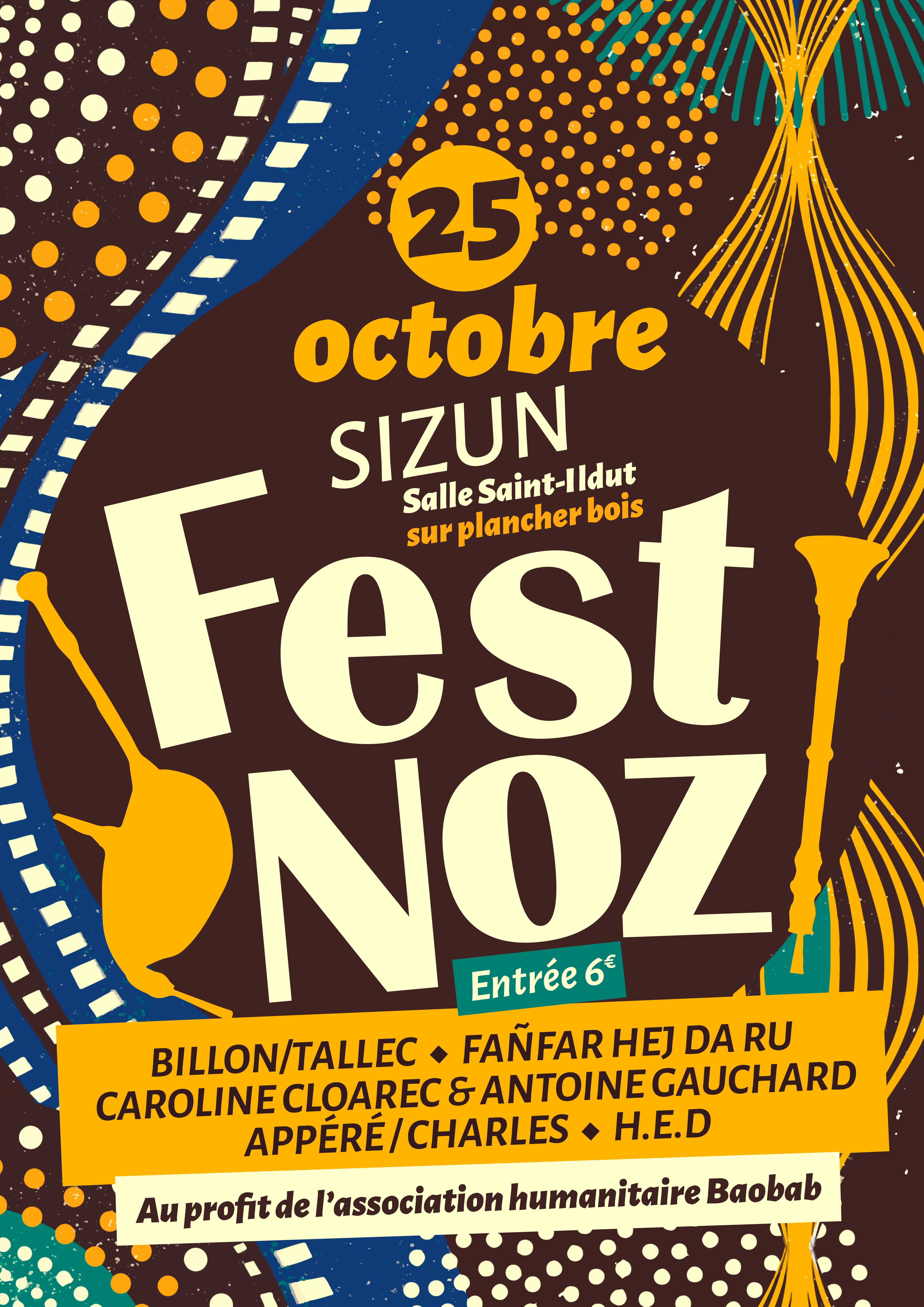 Retour liste Accueil >Animations >Fest-Noz Fest-Noz Sizun 6€ Avec les groupes : Billon/Tallec, Caroline Cloarec et Antoine Gauchard, Fañfar Hej da Ru et H.E.D. Organisé par l’association humanitaire BAOBAB. Dates et heures de l’événement – Le samedi 25 octobre 2025 à 21:00 Tarifs Tarif de base : à partir de 6,00€ Localisation Salle Saint-Ildut Rue des Monts d’Arrée Sizun Ajouter au carnetRetirer du carnet Itinéraire – Accès À proximité