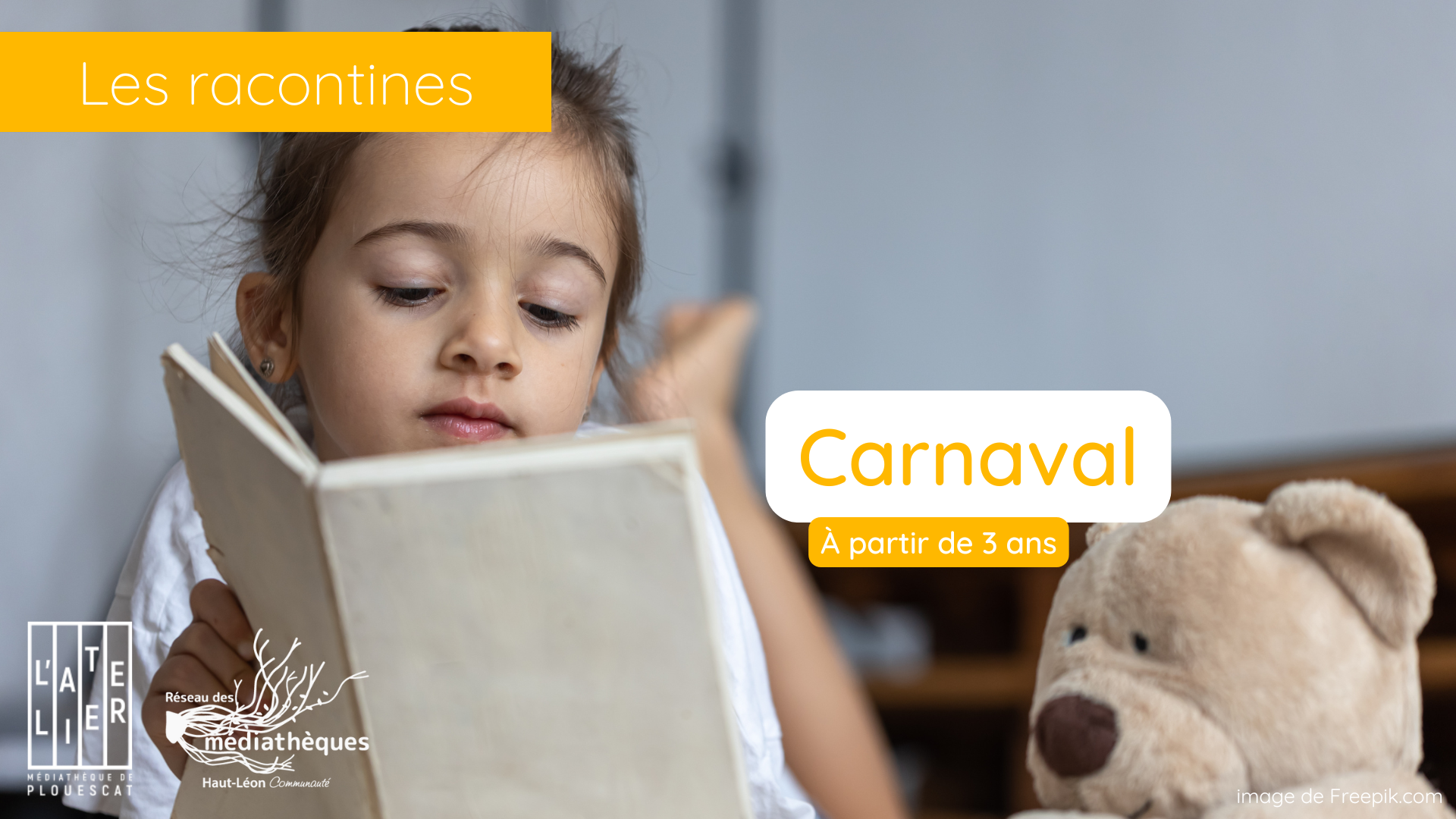 Retour liste Accueil >Animations >Les racontines de Gaïa Les racontines de Gaïa Plouescat Pour les plus grands, les histoires enchantées du Carnaval !À partir de 3 ans, entrée libre. Dates et heures de l’événement – Le samedi 21 février 2026 à 10:30 Localisation Médiathèque l’Atelier 14, place du dauphin Plouescat Tel. 02 98 69 88 81 latelier.mediatheque@plouescat.fr Site internet Ajouter au carnetRetirer du carnet Itinéraire – Accès À proximité