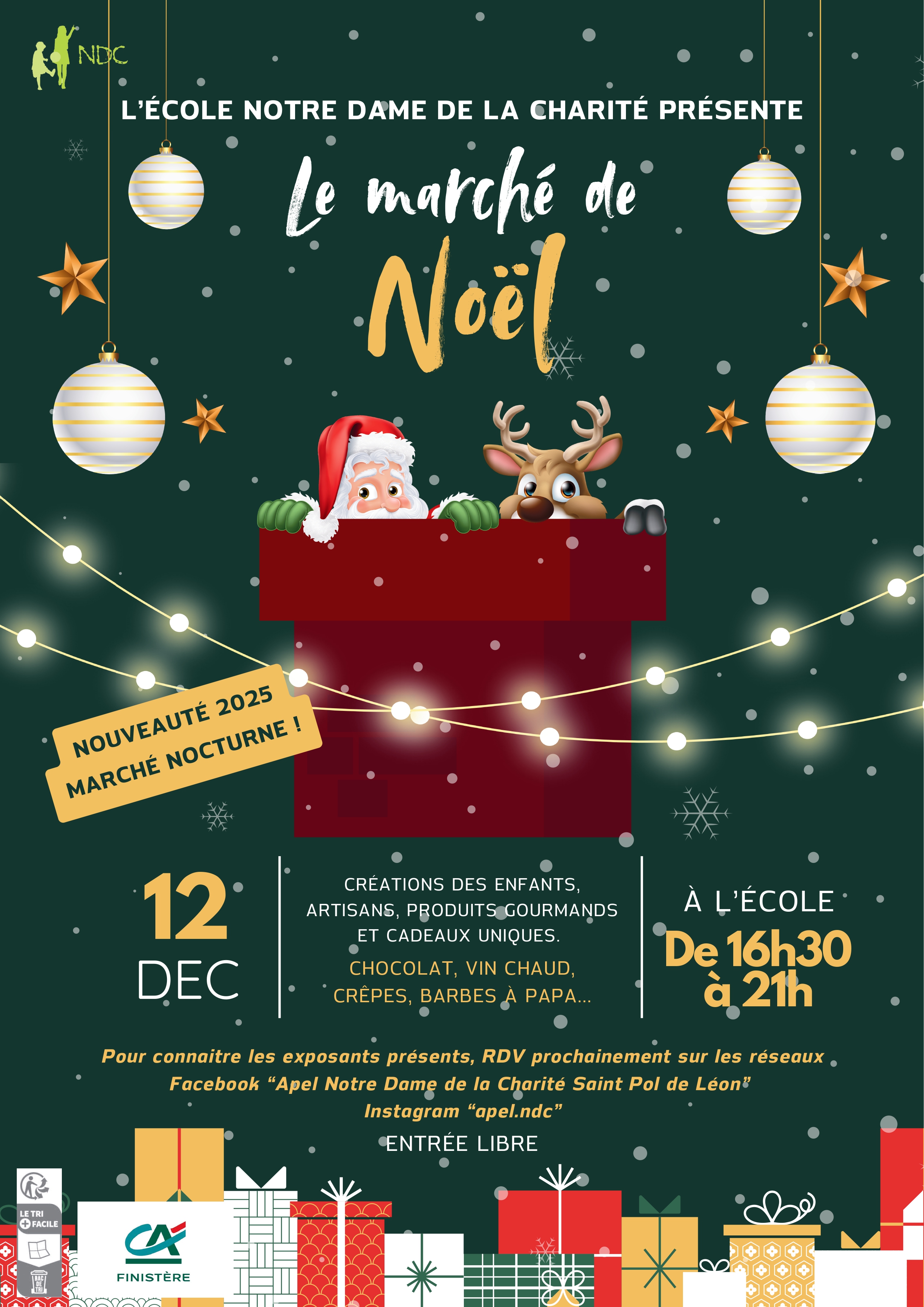 L’APEL de l’école de Notre Dame de la Charité organise pour la deuxième année son marché de Noël : boissons chaudes, crêpes, barbes à papa, Père Noël, exposants…
