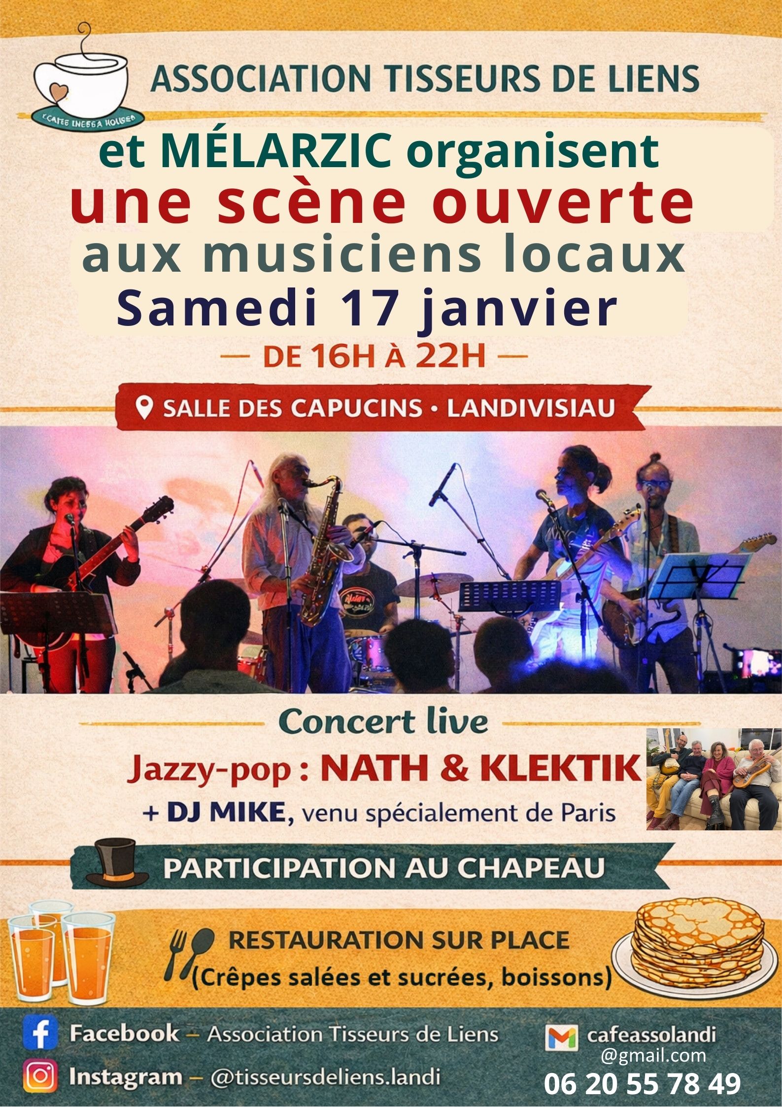 Dès 16h : scène ouverte organisée par le groupe de reprises pop-rock MÉLARZIC.