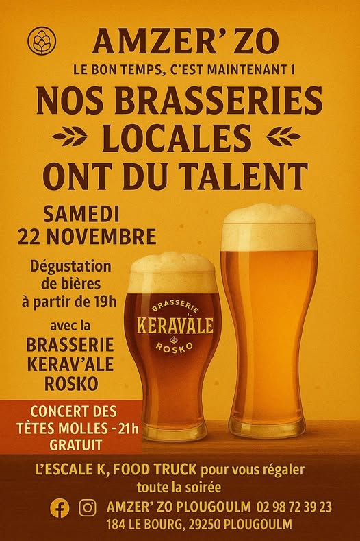 Dégustation de bières avec la Brasserie Kerav’ale dès 19h.