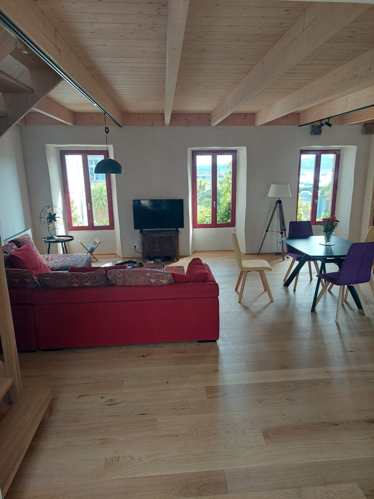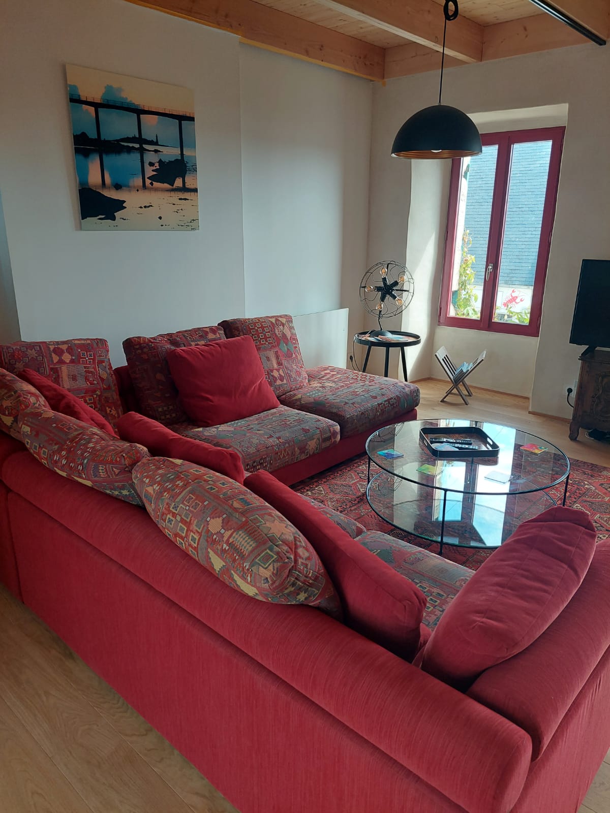 Le séjour avec salon bénéficie d’une vue imprenable sur l’océan, créant une atmosphère apaisante et chaleureuse. WC indépendant.