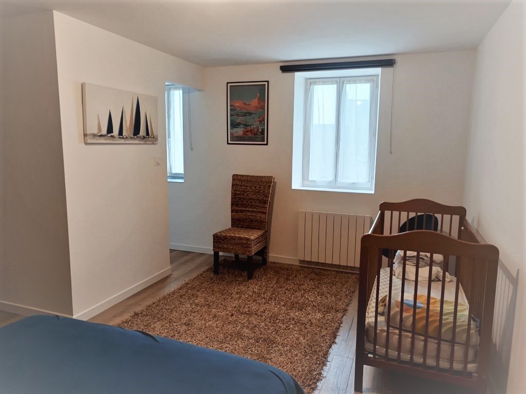 Une chambre avec lit 160*200, lit bébé, salle d’eau privative.