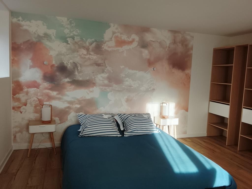Une chambre avec un lit 160*200 et un lit de 120*190.