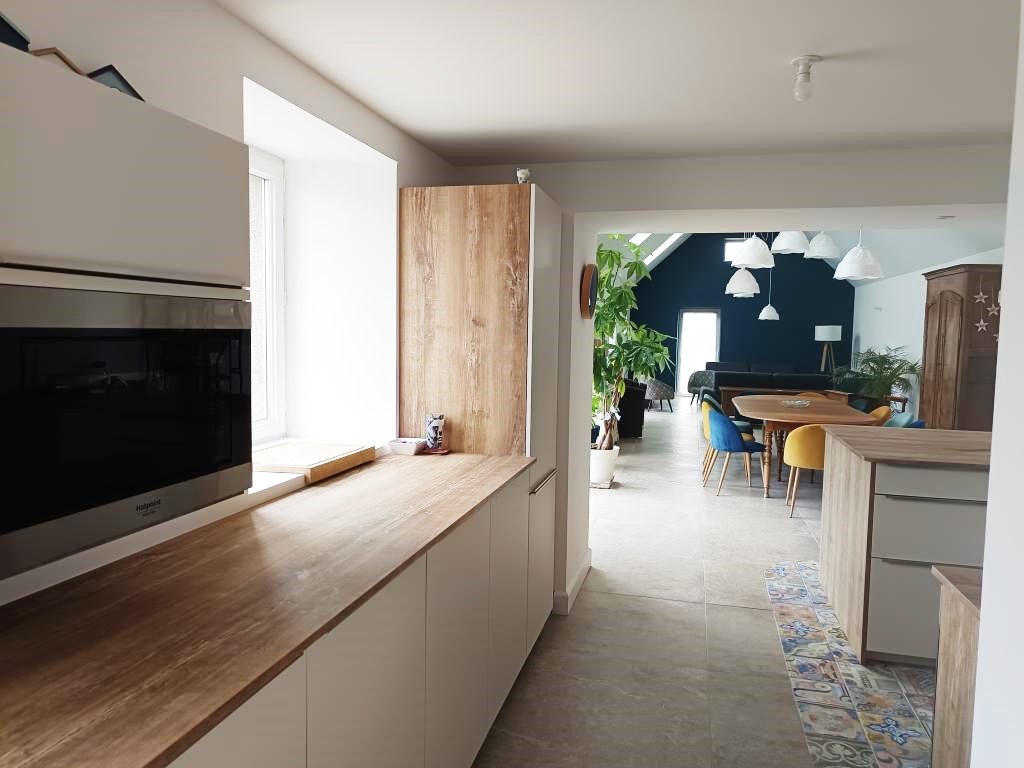 Situé à Plouescat, cette maison de vacances de 180m² entièrement rénovée en 2024 donne accès à un cadre paisible et ressourçant. Elle se trouve dans un hameau à proximité des plages et du bourg, à moins de 2km on retrouve tous les services (boulangeries, pharmacie, supermarché, bar, restaurant, cinéma, Casino).