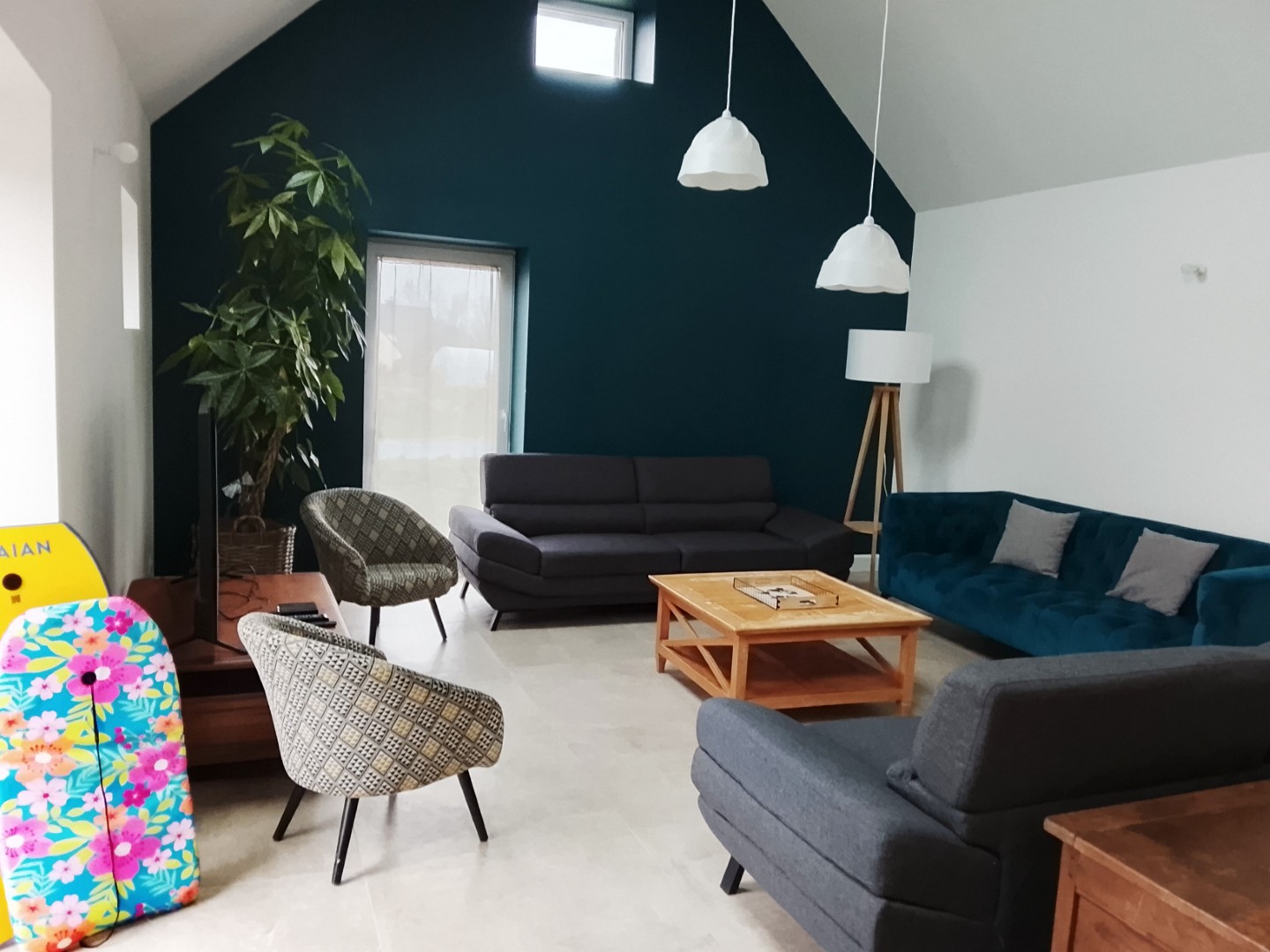 Vous profiterez également d’une terrasse ensoleillée de 50m2 avec table et salon de jardin, bain de soleil, barbecue et d’une table de ping-pong. Jardin paysagé en cours de réalisation.