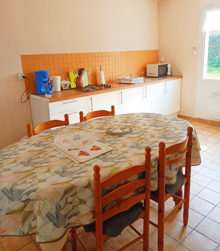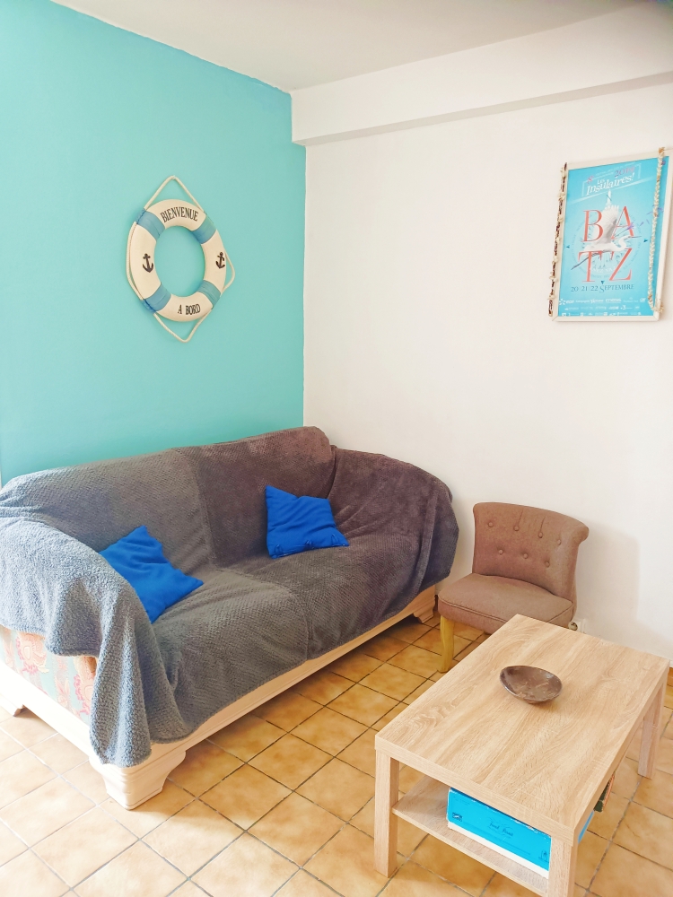 Étage : 1 chambre avec 1 lit 2 personnes (140cm) et 1 lit d’1 personne. 1 chambre avec 1 lit 2 personnes (120cm), draps fournis. Jardin privatif clos, salon de jardin, barbecue.