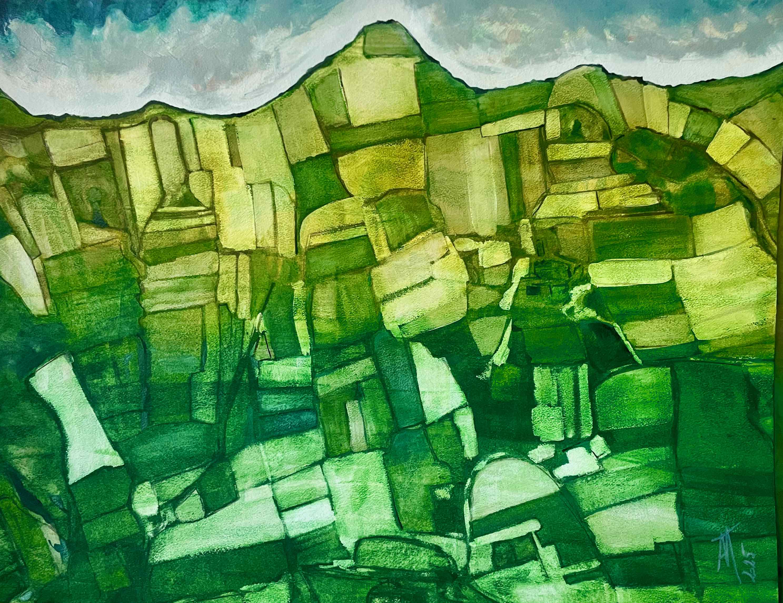 Je suis peintre et j’ai déjà fait deux expositions à l’île de Batz: en 2024 en soutien au Jardin Georges Delaselle avec une évocation des plantes du jardin, et en 2025 sur le thème de l’agriculture en m’inspirant de la topographie des champs sur l’île de Batz. Je réalise également des mosaïques sur ce même thème.