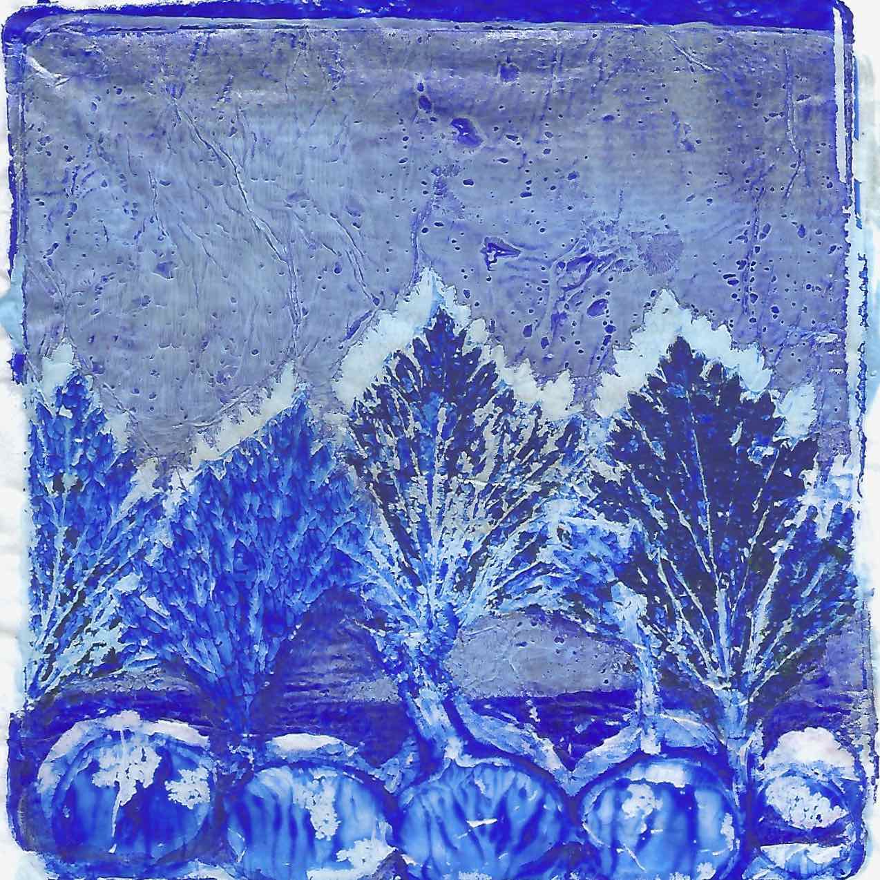 Je réalise également des collages réalisés avec des papiers de soie préparés à l’acrylique avec des empreintes végétales.