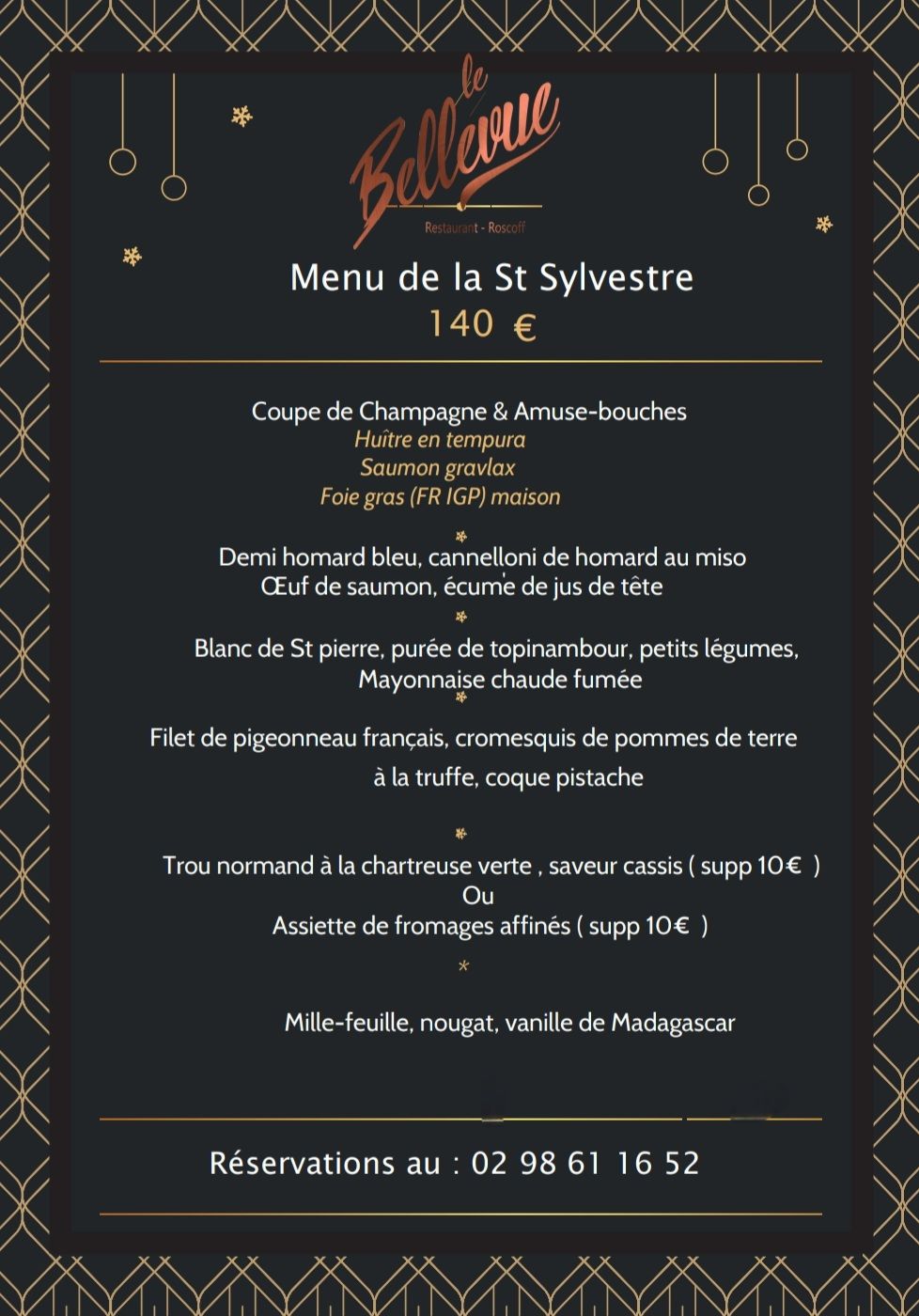 Réveillon Saint-Sylvestre : Menu 140 € sur réservation (maj 23.10.25).